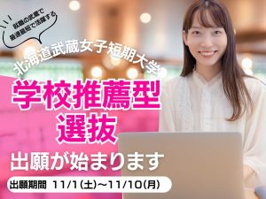 北海道武蔵女子短期大学 学校推薦型選抜出願がスタートします