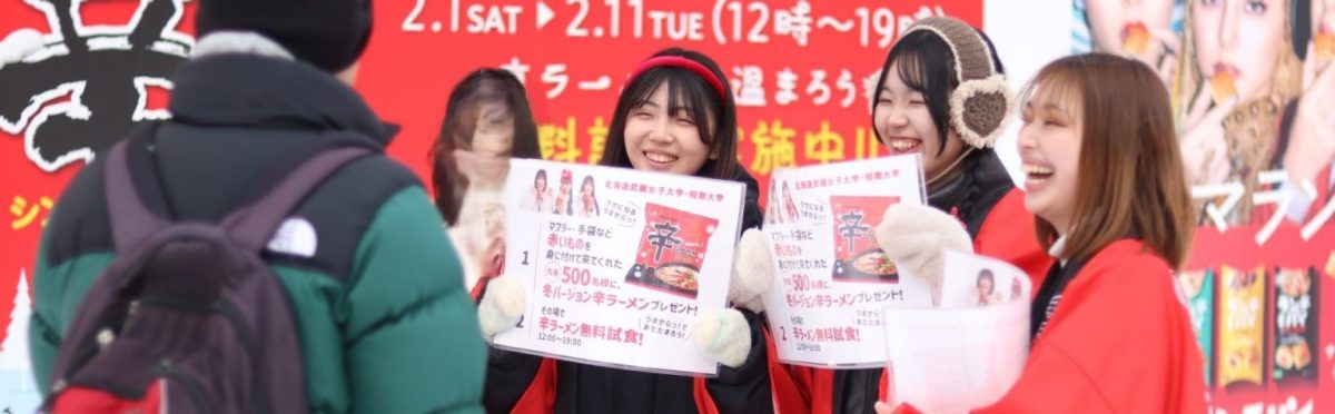 辛ラーメンや雪まつりという世界的な大きな舞台で、北海道武蔵女子大学・短期大学の学生が考え、動き、発信する。