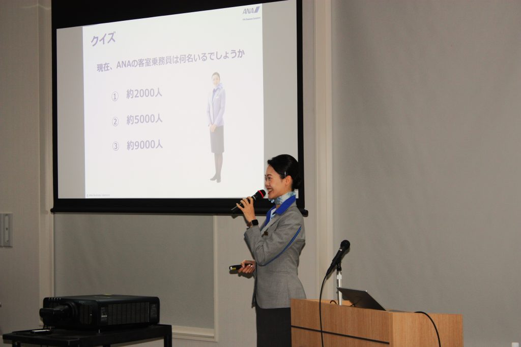 当日は、ANAグループの地上業務を担うANA新千歳空港様や、ANAビジネスソリューション様が運営するANAエアラインスクール講師による客室乗務員(CA)の講演が行われました。また、空港のバックヤード見学も実施され、高校生からは「客室乗務員やグランドスタッフなど、多くの航空部門の仕事を直接見ることができ、自分の将来の進路を考える貴重な時間になった」との声が寄せられました。