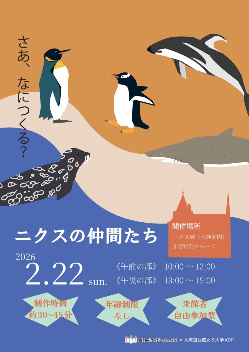 北海道武蔵女子大学の学生による「キッズデザインプロジェクト」が、2月22日(日)に 登別マリンパークニクス(北海道 登別市)にてワークショップを開催します。