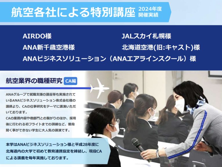 エアラインの職業に向いている人はどのような人なのか、よくわかりました。個人ではなくチームとして行動をともにすることに責任感を感じました。空港やグランドスタッフに必要な力は語学力だけではなく、姿勢や笑顔なども必要だとわかりました。話を聞いて北海道武蔵女子短期大学で客室乗務員になりたいという思いが強くなりました。