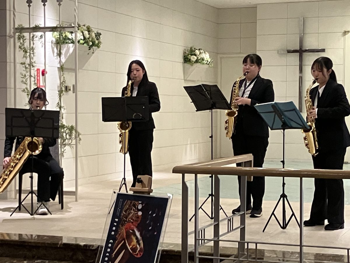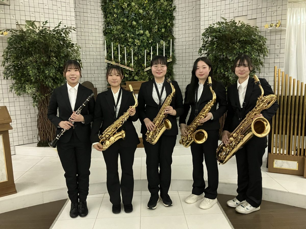 12月17日(水)、ANAクラウンプラザホテルの2階チャペル前にて、吹奏楽部の1年生5名が演奏いたしました。