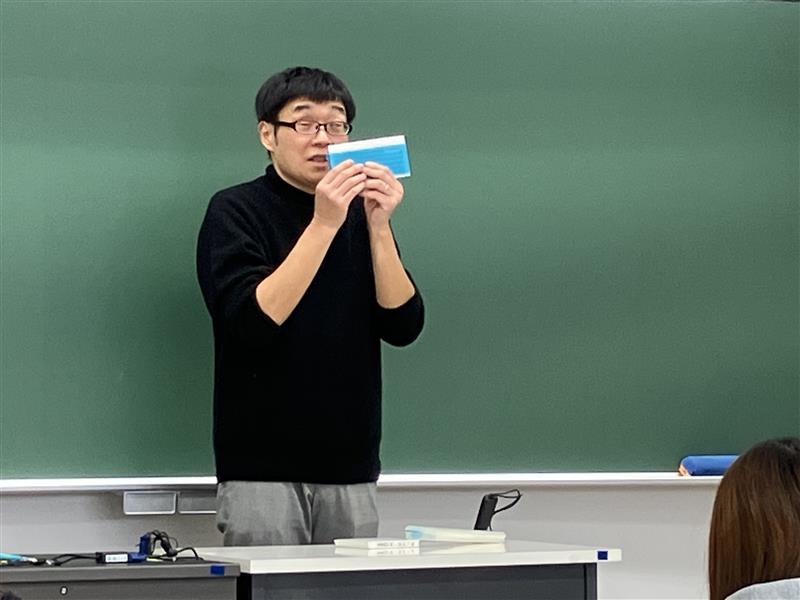 当日は春休み期間中にもかかわらず14名の学生が参加しました。約30分間の講話では、視覚障がい者として日常生活の中で感じる困難や、周囲の理解や声かけがもたらす安心感について、実体験を交えてお話しいただきました。