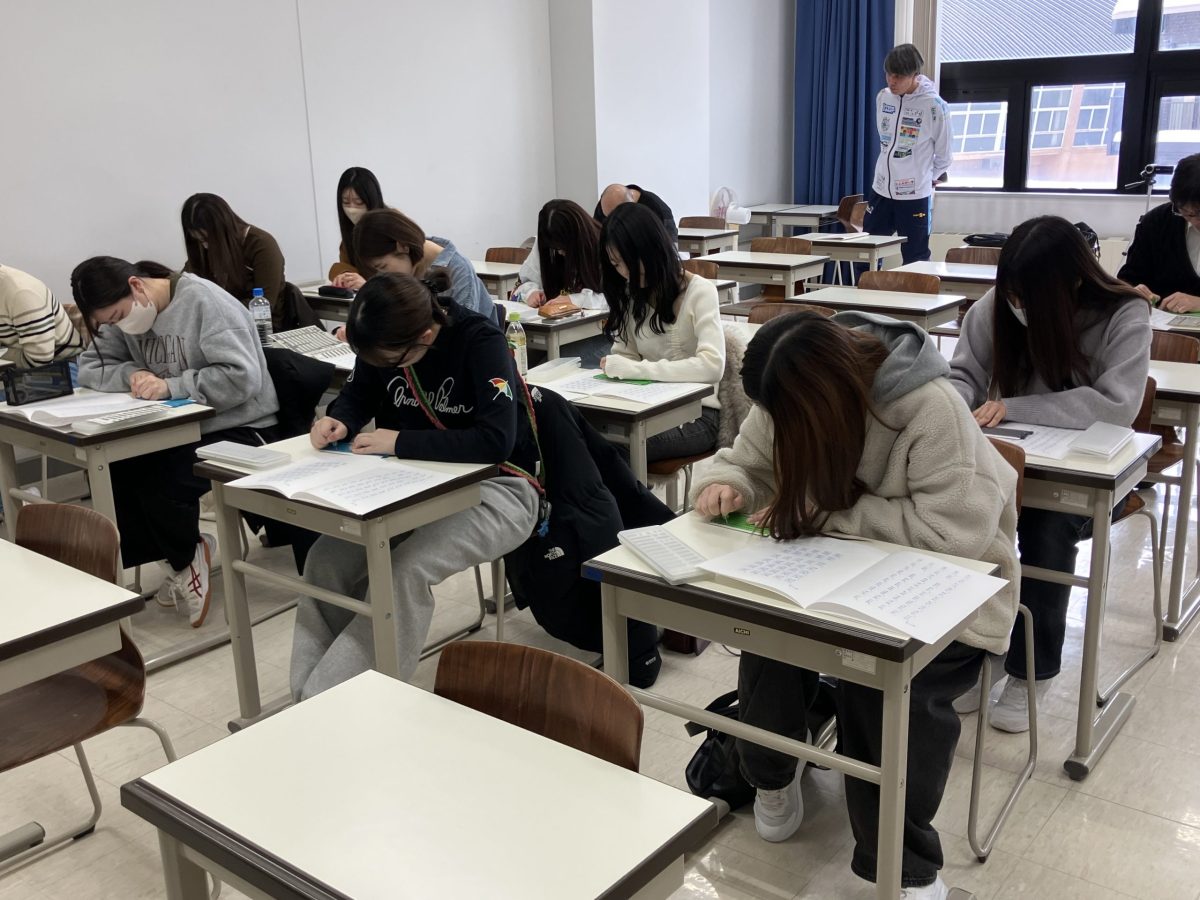 1月29日(木)、北海道武蔵女子大学・北海道武蔵女子短期大学にて、ライラック学生会 課外活動委員会主催による「障がいに関する講話会『視覚障がいとの出会い ~講演+点字器体験~』」を開催しました。
