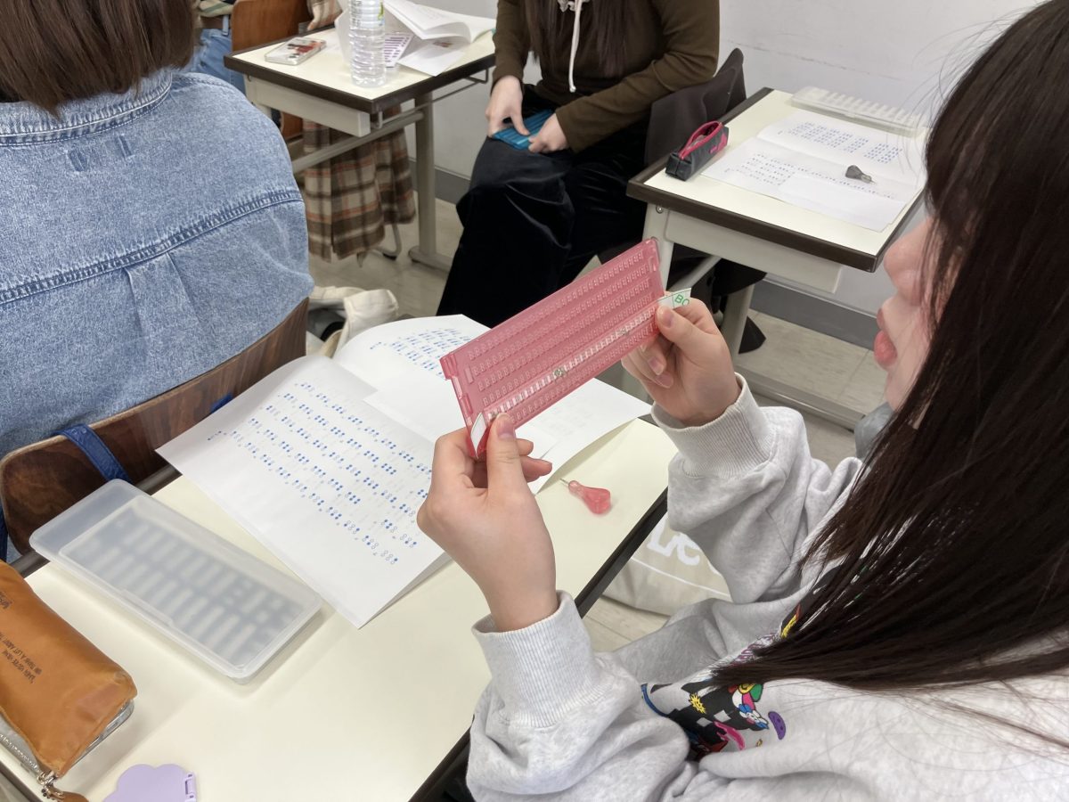 完成した点字を手にした学生からは、情報を正確に伝えることの難しさと同時に、伝わる喜びを実感する声も聞かれました。体験を通じて、相手に合わせたコミュニケーションの重要性を学ぶ機会となりました。
