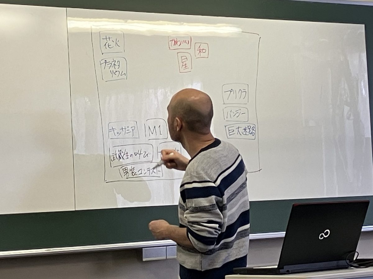 冒頭では、大学祭担当の齋藤先生がファシリテーターとして登壇。「次の武蔵祭は、節目となる第60回目です!」という呼びかけに、参加した学生たちの士気も一気に高まりました。記念の年を自分たちの手で成功させたいという思いが、会場全体に広がります。