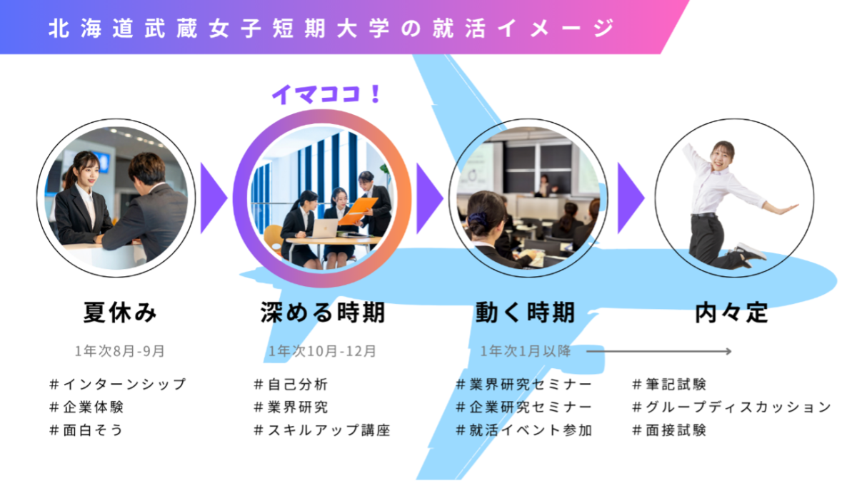 今回の主役は、厳しい航空業界の就職活動を乗り越え、見事内定を掴んだ北海道武蔵女子短期大学2年生の先輩たちです。