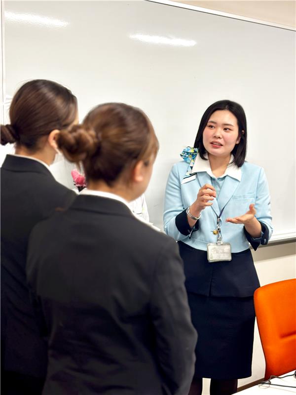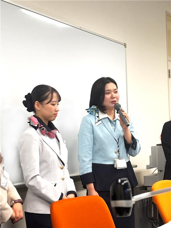 AIRDOの制服を身にまとった先輩方の姿は、彼女たちにとって眩しく映ると同時に、自らの未来を重ねる強い刺激となったことでしょう。 また、短大2年生も参加し、在学中にお世話になった先輩方に航空業界への内定報告が出来る、嬉しい再会ともなったようです。 このような「憧れの先輩の背中を追いかけ、その繋がりを未来へ繋げていく環境」こそが、本学のかけがえのない強みであると、改めて深く認識いたしました。