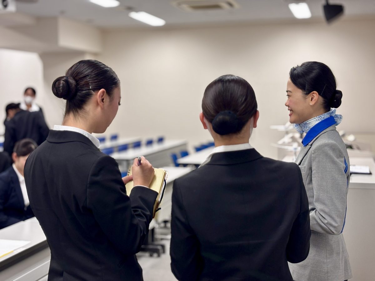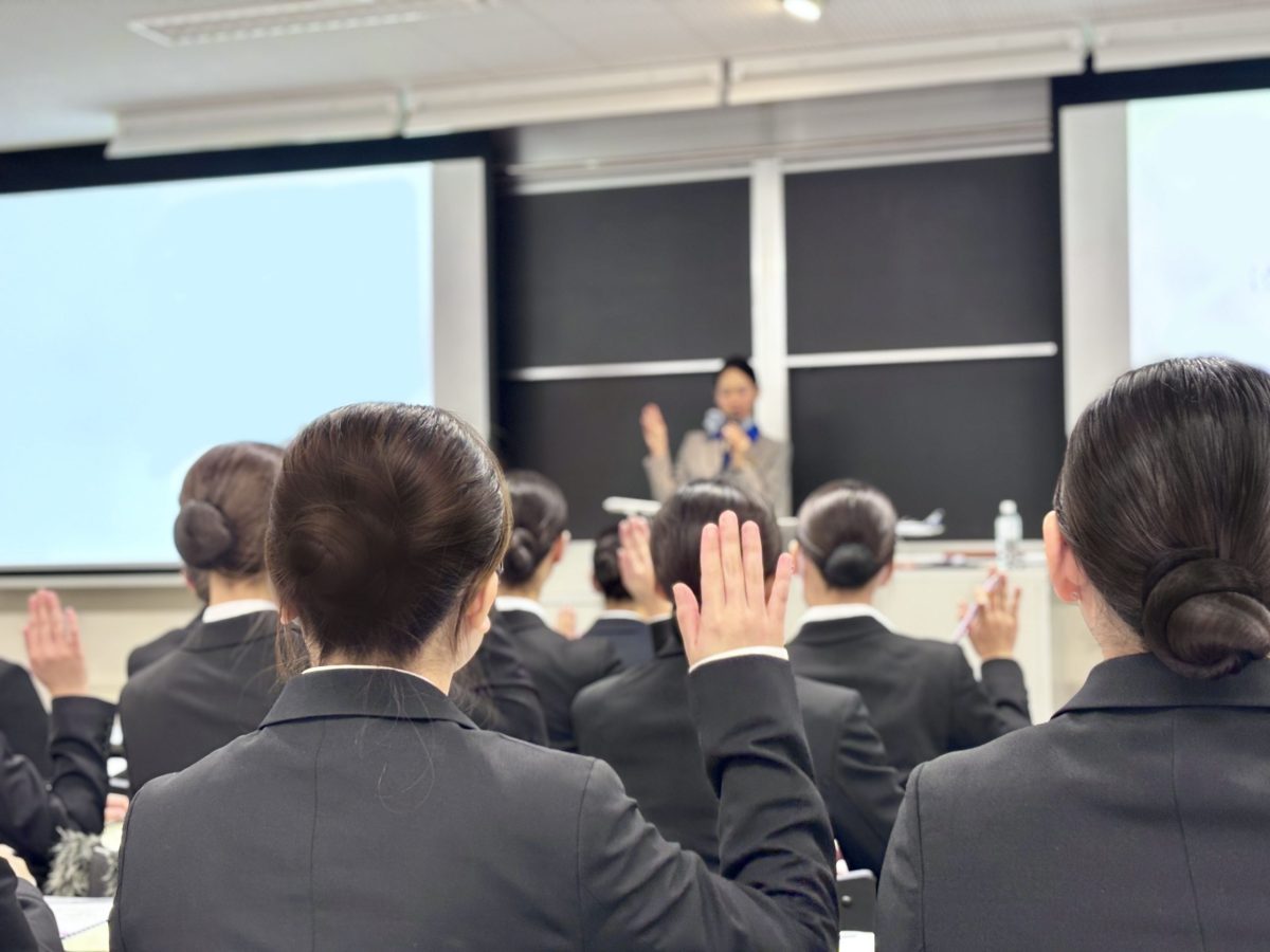本講座は、将来航空業界を目指す学生たちが、客室乗務員のリアルな業務や訓練の様子、そしてプロフェッショナルとして求められる視点を学ぶことを目的としています。