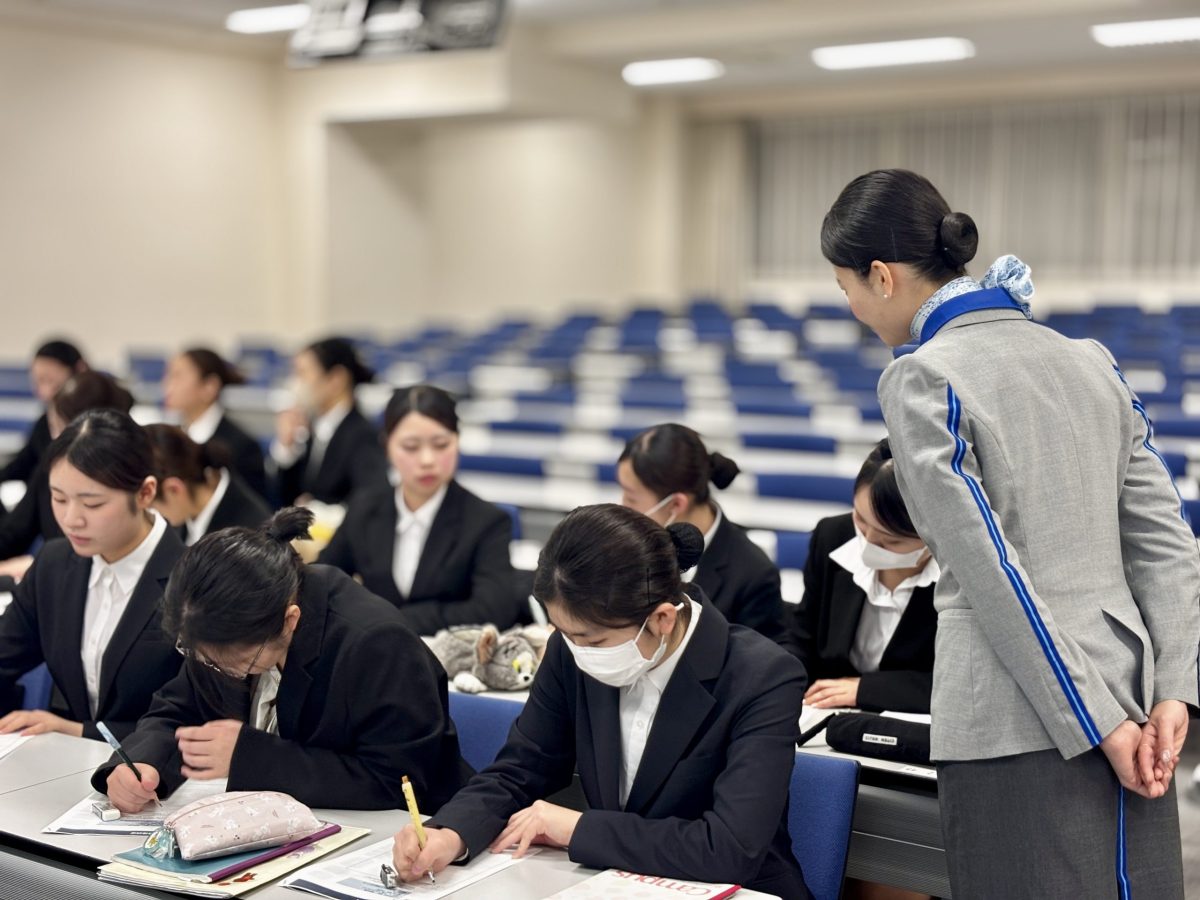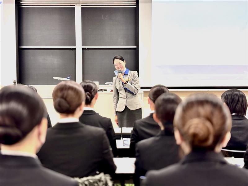北海道武蔵女子大学・短期大学では、12月16日(火)、「航空業界対策講座」の一環として、現役客室乗務員による特別講座を開催いたしました。