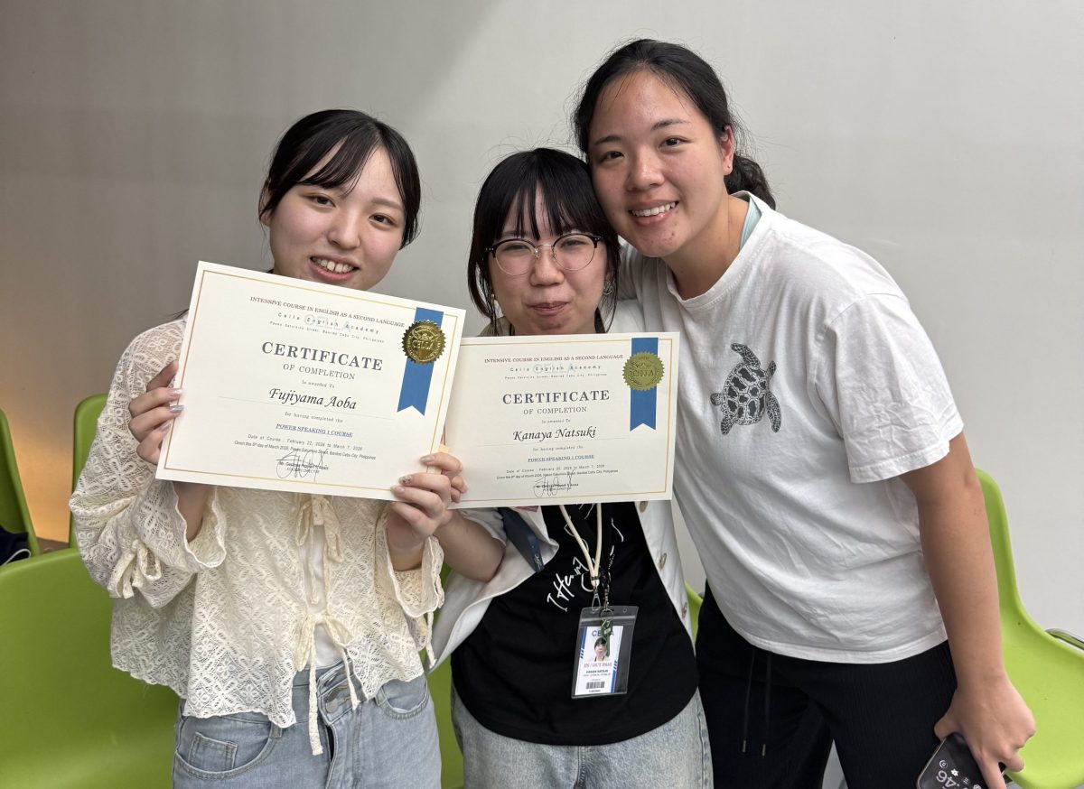 北海道武蔵女子大学のセブ島での語学研修は、授業だけでなく生活をともにする環境が特徴であり、学生同士の交流が自然と深まっていきます。毎週金曜日には、その週で研修を終える学生の修了式が行われ、英語学習を通して生まれた国境を越えた友情を実感する機会となりました。