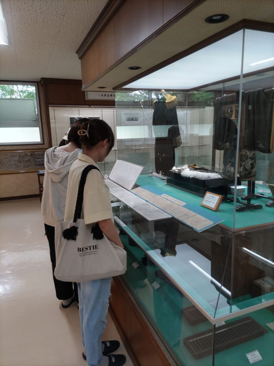 だて歴史文化ミュージアムでは、展示を中心に伊達市の歴史文化を学びました。見学に際しては、学芸員の方に丁寧な解説をしていただき、学生たちも理解を深めている様子でした。市内で出土した考古遺物、亘理から北海道へ持ち込まれた伊達政宗関係の古文書や亘理伊達家ゆかりの武具をはじめ、伊達市の歴史文化を存分に味わうことができました。開拓の記憶を絵画に残そうとした小野潭の作品が並ぶ企画展は、まさに圧巻の展示となっていました。