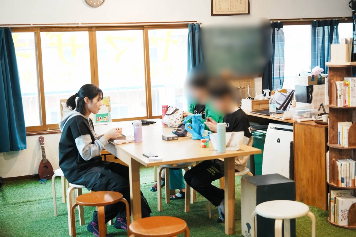 参加した学生たちは、それぞれのスケジュールに合わせて2時間から半日程度、施設に滞在しました。 フリースクールには小学生から中高生まで、学童保育所には主に小学校低学年の子どもたちが集まっています。