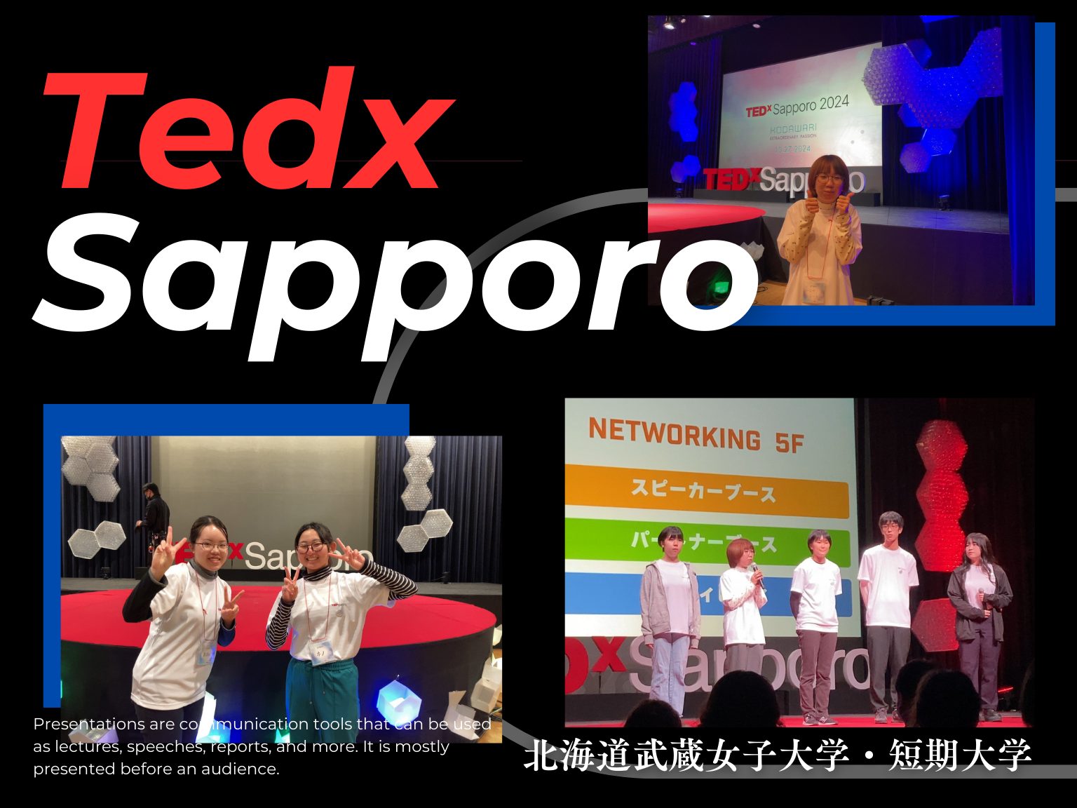 北海道武蔵女子大学・短期大学の学生たちが、2024年12月に開催されたTEDxSapporoにボランティアとして初めて参加しました。今年のテーマは「こだわり」。スピーカーのプレゼンテーションだけでなく、運営スタッフや参加者との交流を通して、多様な価値観や生き方に触れる貴重な経験となりました。学生たちの体験談とともに、TEDxSapporoの魅力を紹介します。