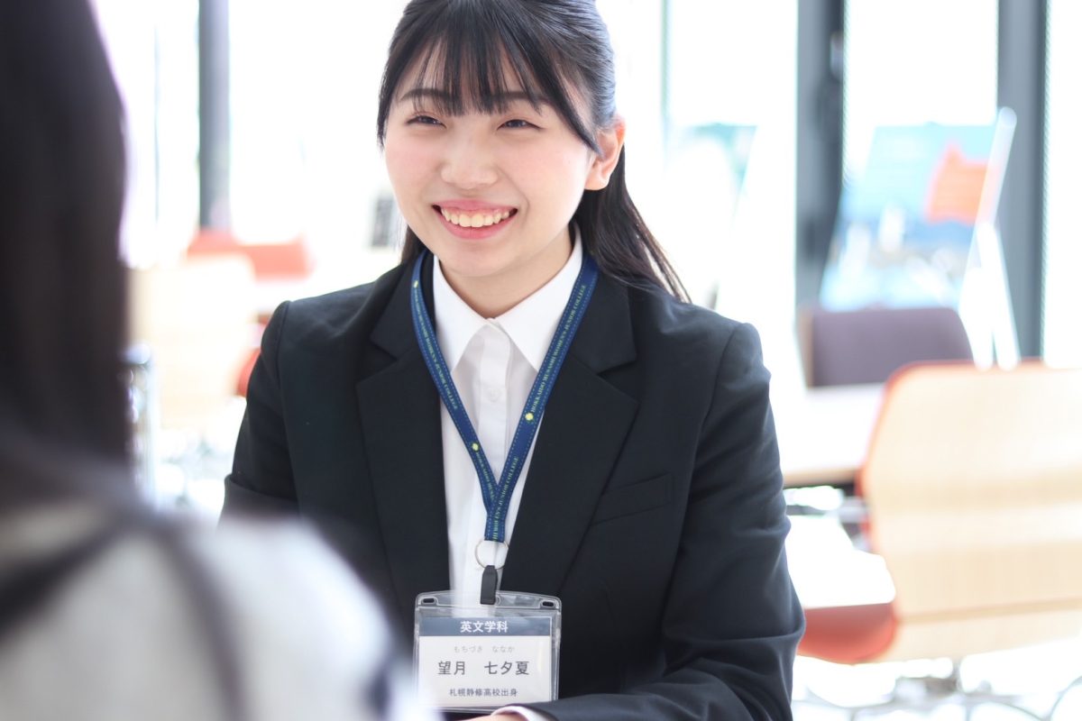 望月さん 「今回の訪問では、大学生活の様子や就職活動についてお話しました。特に短大と四大のカリキュラムの違いや、学生広報スタッフ「エールズ」での活動について詳しくご報告しました。母校の後輩がオープンキャンパスに参加してくれた話題でも盛り上がり、とても嬉しく感じました。