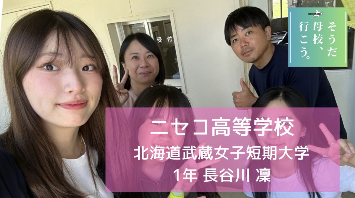 今回は、北海道武蔵女子短期大学1年 長谷川 凜さんが母校・ニセコ高等学校を訪問し、相澤 沙織先生・中谷 知記先生と再会した際の様子や感じたことをご紹介します。